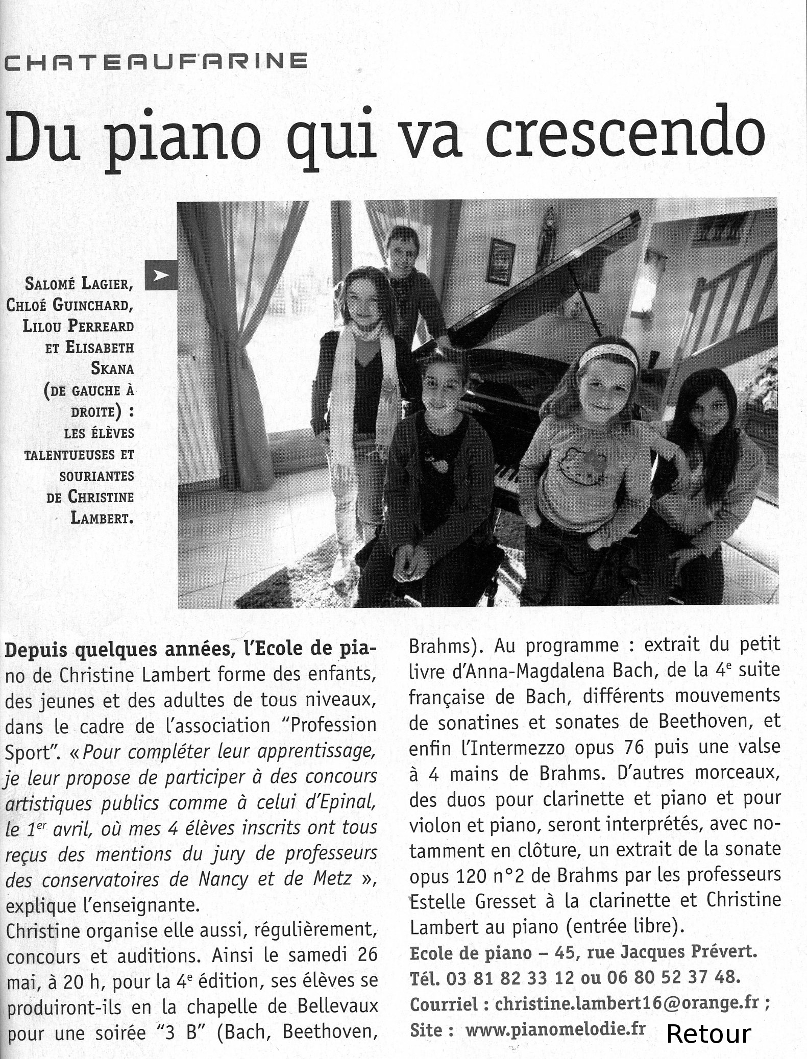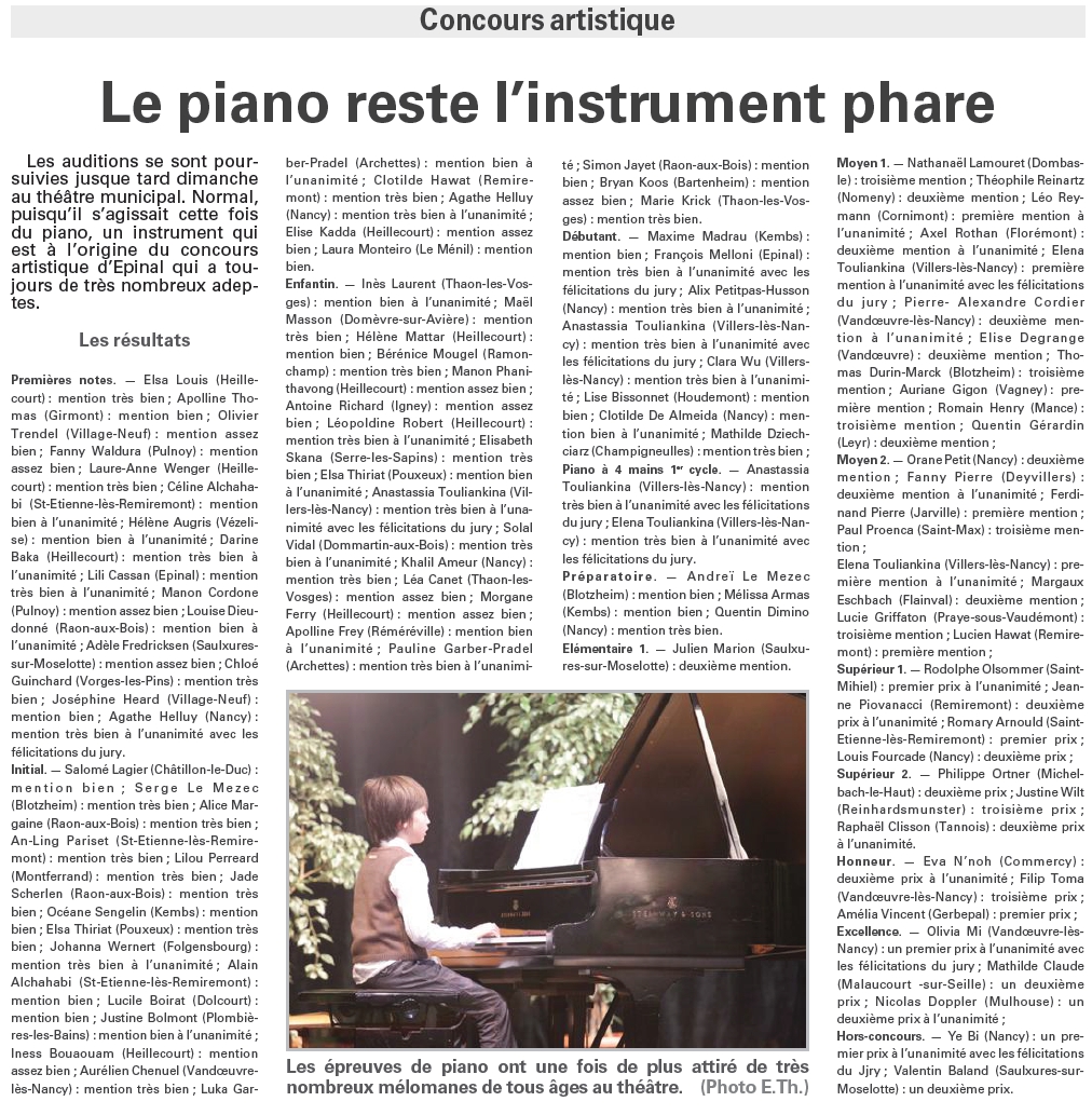 Quatre élèves : Chloé, Salomé, Lilou et Elisabeth ont participé au concours artistique de la Ville d'Epinal dans la discipline : piano.