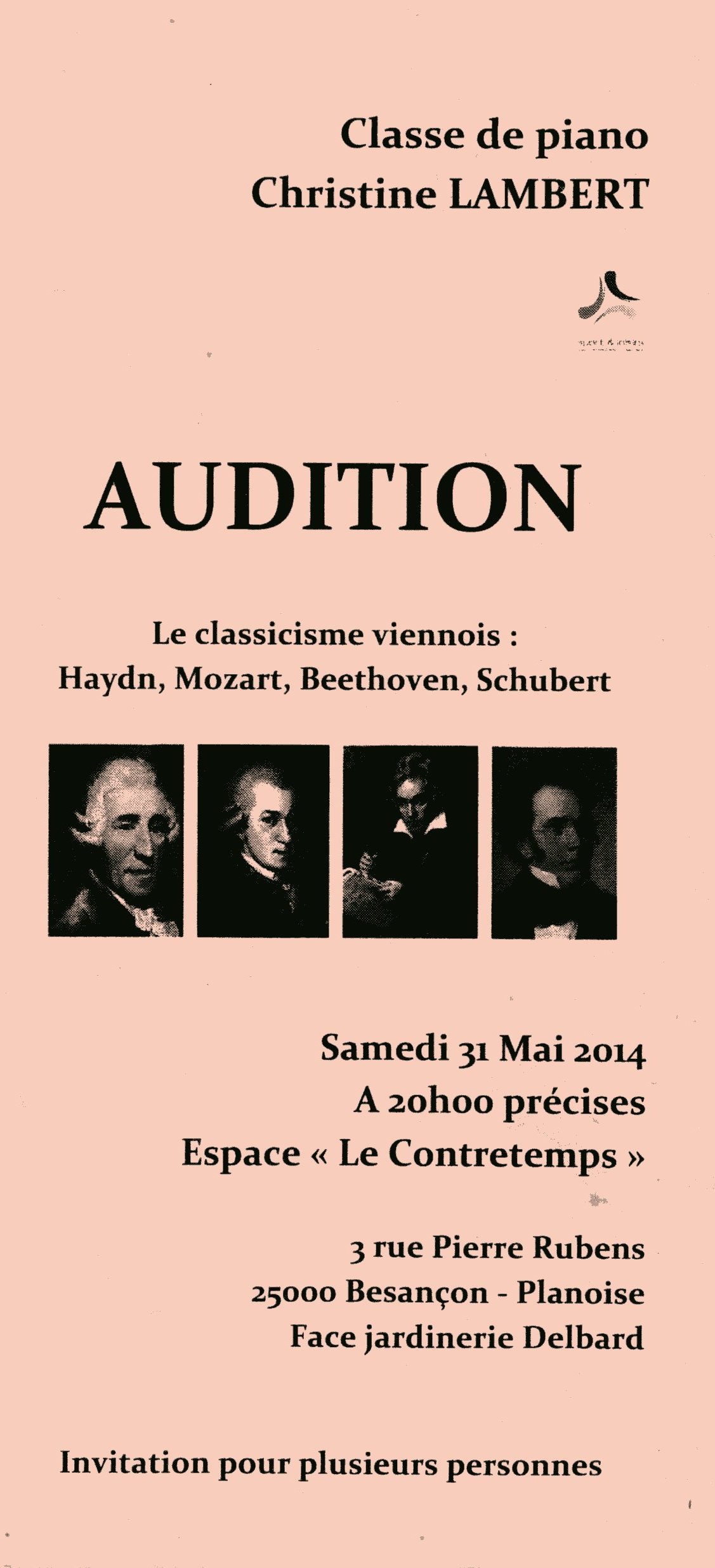 Les élèves pianistes de Madame Christine Lambert se sont produits le samedi 31 mai à 20 heures précises à l'Espace "Le Contretemps" sur le thème du "Classicisme viennois".
