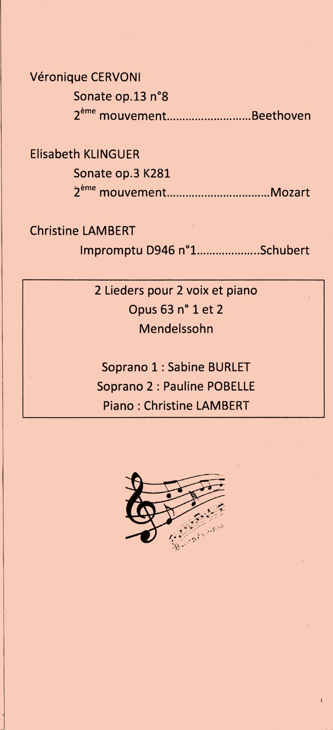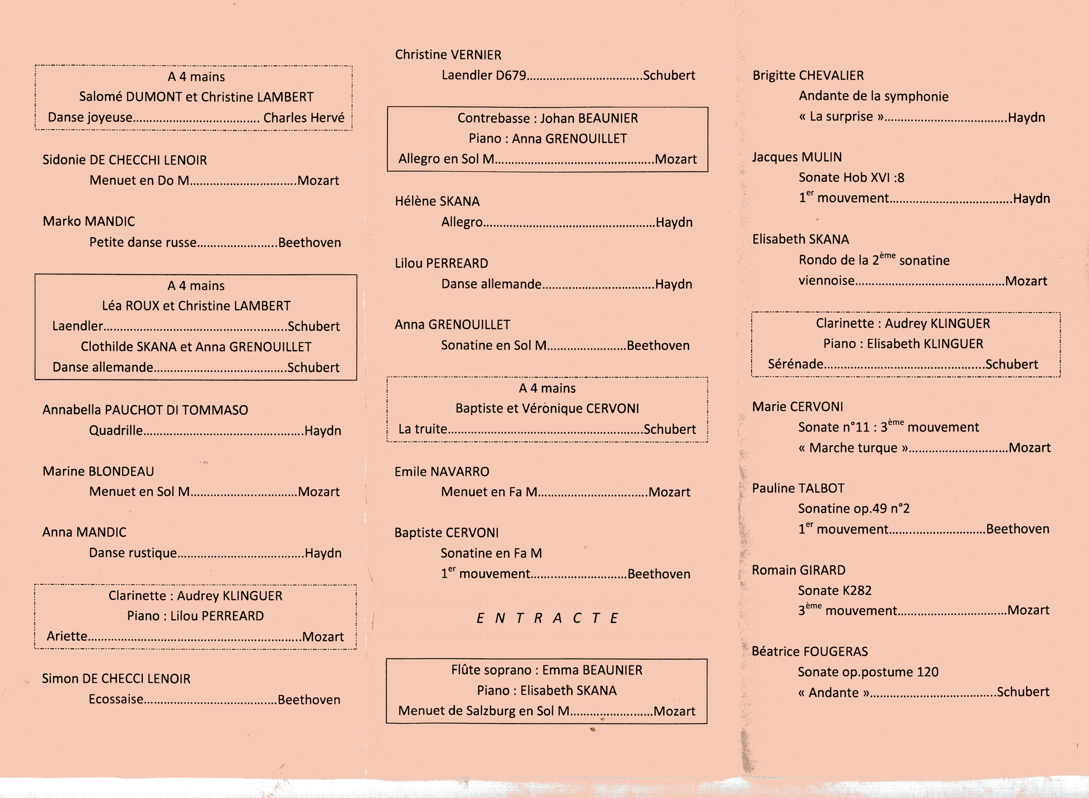 Ils ont interprété les œuvres (ou extraits d'œuvres) listées dans le programme complet ci-après :