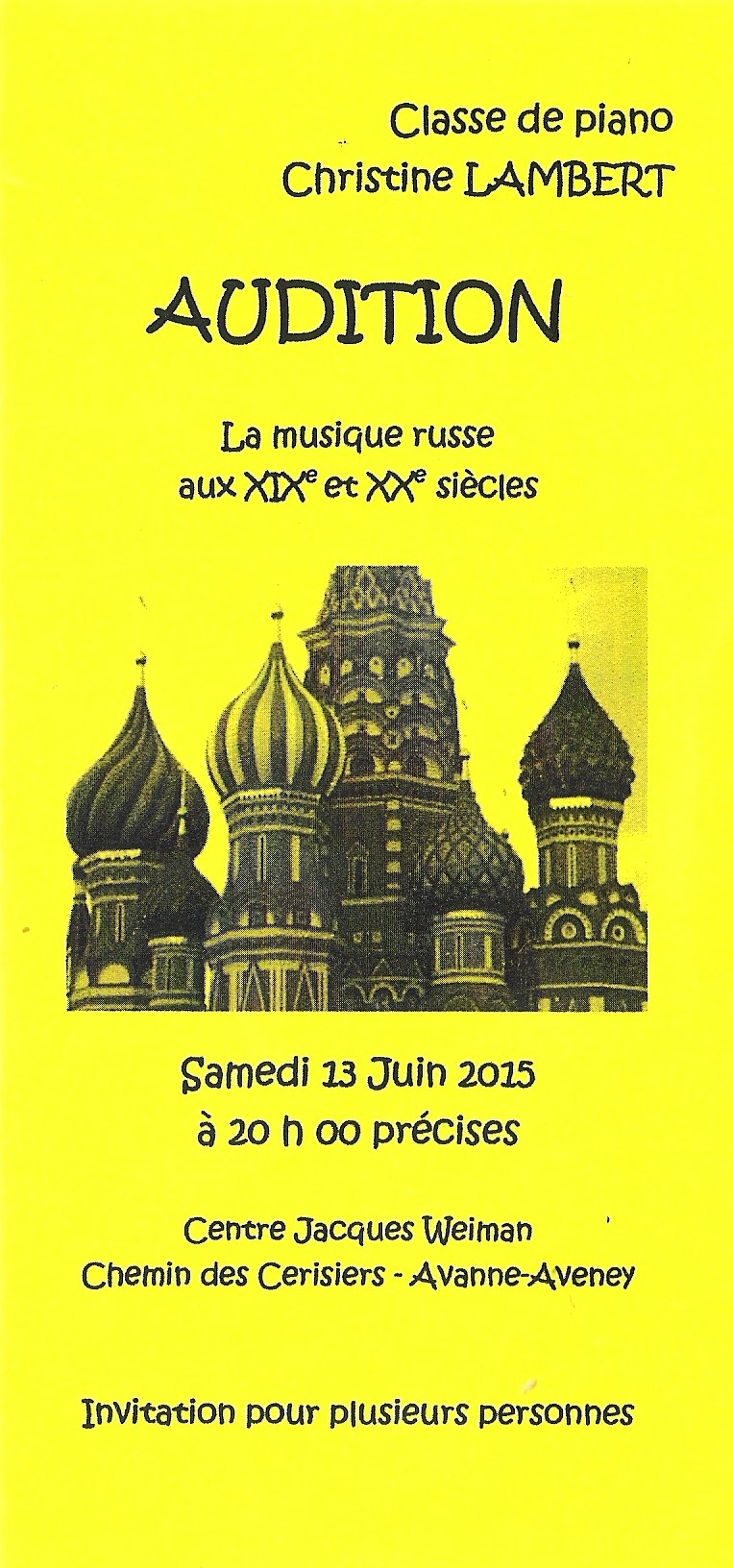 13 juin à 20 heures au centre Jacques Weinman (Chemin des