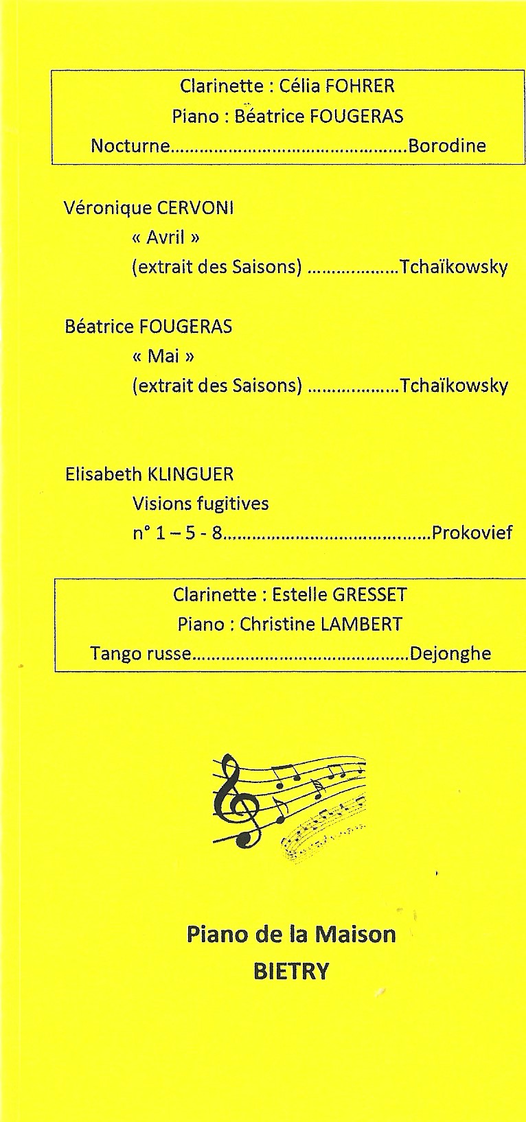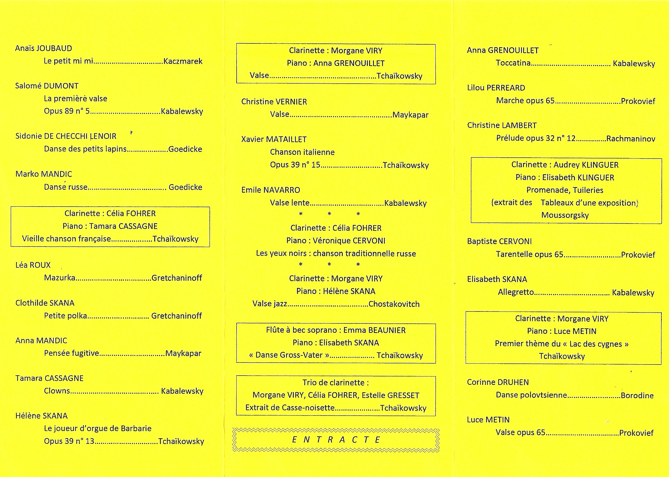 Ils ont interprété les œuvres (ou extraits d'œuvres) listées dans le