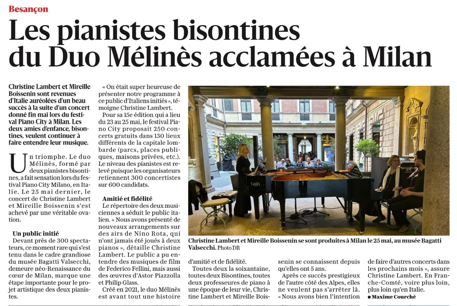 Lambert au festival "Piano City Milano" avec le Duo Mélinès